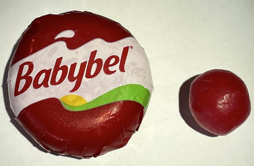 I made two balls.  The first made of soft plastic from a Babybel cheese.